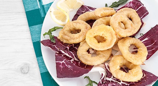 Teneri anelli di totano ricoperti da una gustosa pastella, deliziosi e croccanti, ideali per completare un fritto misto.