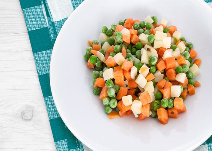Mix di verdure per preparare un’insalata russa in pochissimo tempo. Può essere servita come antipasto tipico della cucina italiana, in particolare sulla tavola delle feste. Aggiungete la maionese e a piacimento uova sode e dadini di prosciutto cotto.