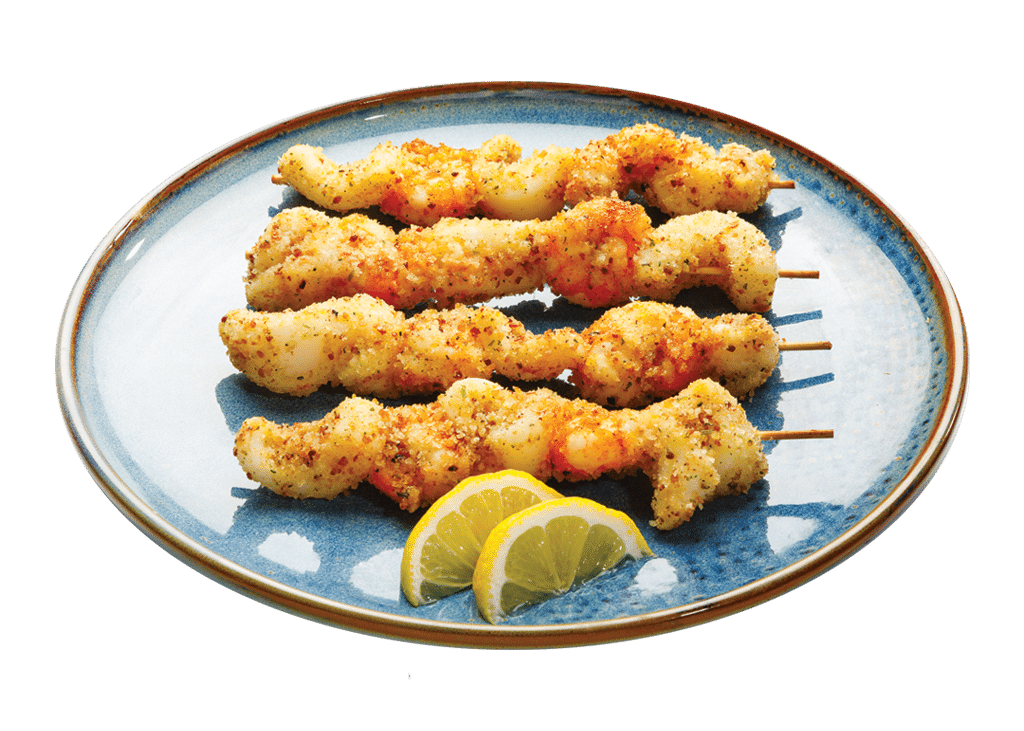 Scopri la bontà degli spiedini di gamberi e seppie avvolti dalla dorata e croccante panatura. Pronti per te, lasciati scongelare parzialmente, aggiungi un filo d’olio extravergine di oliva e lasciali cuocere in forno preriscaldato a 220°C per 20 minuti. Ingredienti: Seppia, gambero e pane grattugiato.