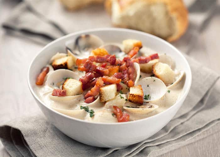 Zuppa di patate con telline e bacon