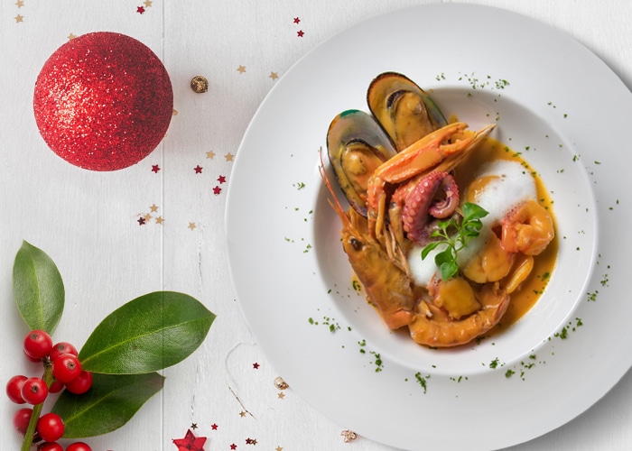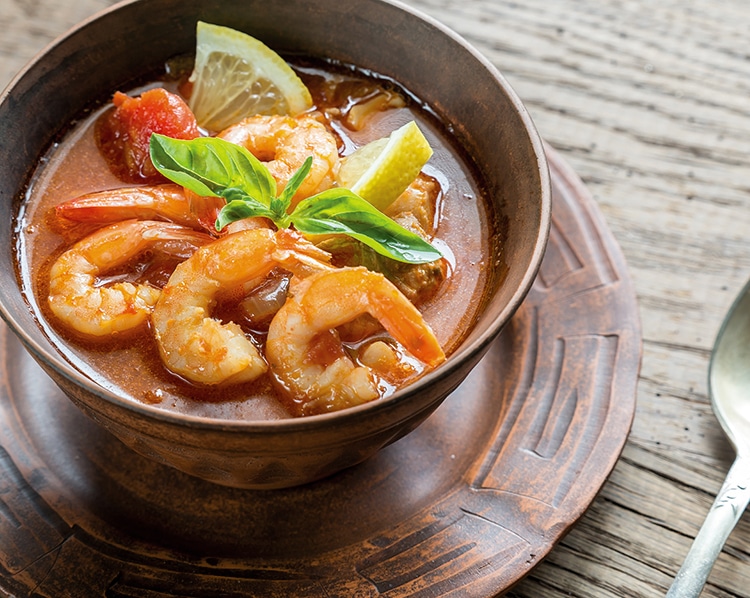 Zuppetta di scampi, polpo e molluschi