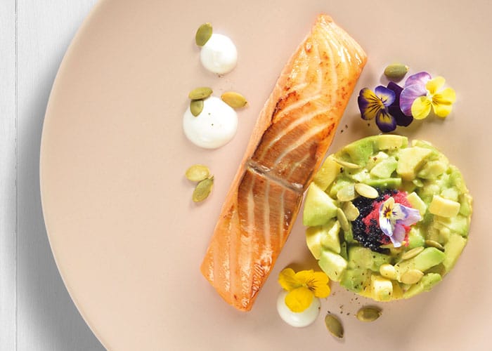 Cuocete i tranci di salmone su una piastra antiaderente leggermente unta per circa 15 minuti, avendo l’accortezza di rigirarli su tutti i lati.A parte tagliare la polpa dell’avocado a cubetti grossolani e mescolarli subito con succo di lime, cipollotto tritato finemente (solo la parte bianca), sale e pepe.Adagiare il salmone nel piatto e con l’aiuto […]