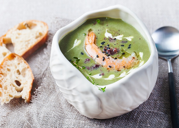 Fai bollire i broccoli in abbondante acqua salata per 10 minuti e fai appassire gli spinaci in una pentola con poca acqua. Salta le code di mazzancolla in una padella in cui avrai fatto soffriggere lo scalogno con un filo d’olio, poi toglile e insaporisci nella stessa padella anche le verdure. Con un frullatore ad […]