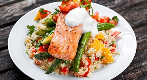 Salmone con cous cous di verdure