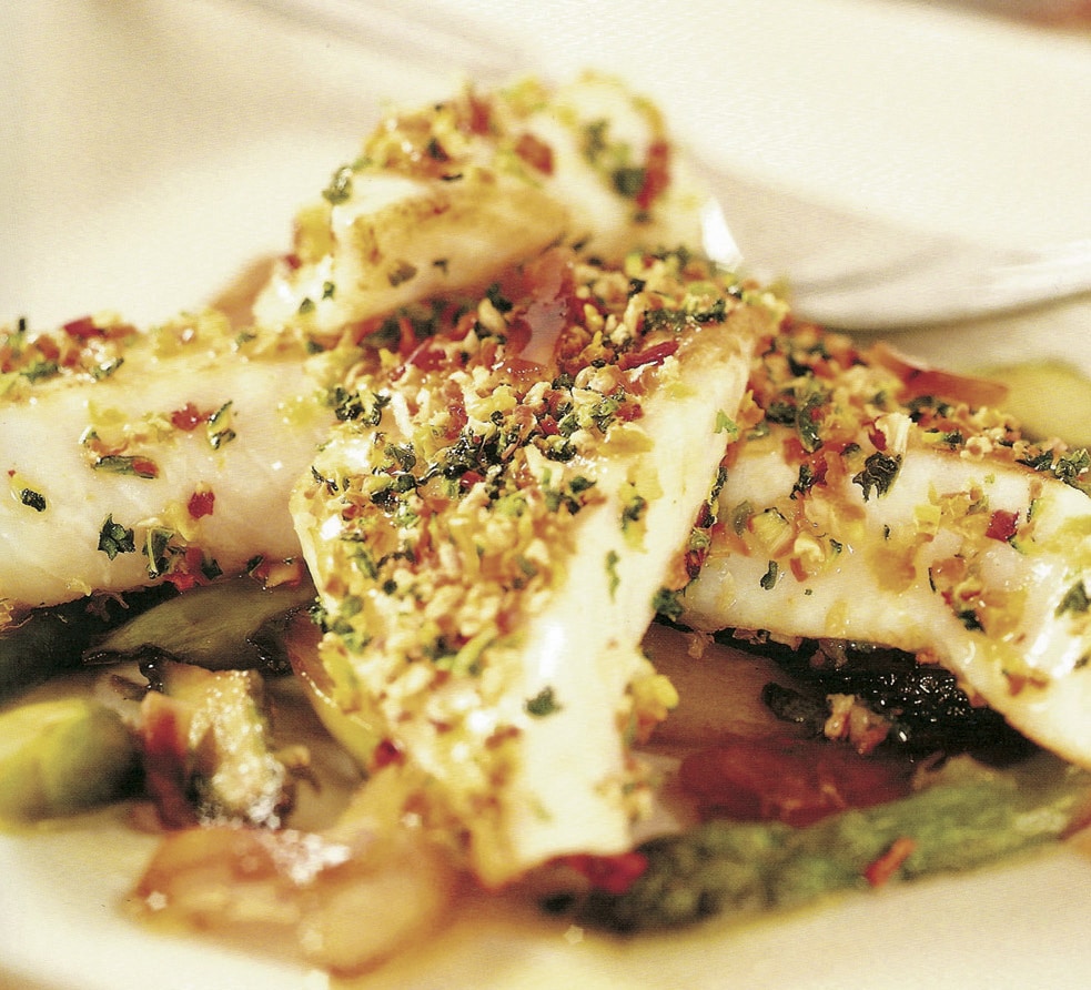 Rosolate i dadini di speck nel burro caldo. Aggiungete gli scalogni, l’aglio a dadini e le lenticchie e fatele rosolare aggiungendo il concentrato di pomodoro. Versate sopra il fumetto di pesce, aggiungete il rametto di timo e fate bollire per 20 minuti circa. Incorporate la panna liquida. Condite con sale, pepe nero e aceto balsamico. […]