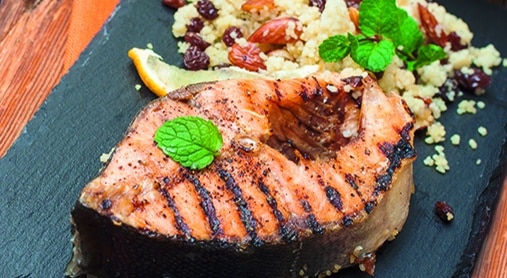 Trancio di salmone con cous cous alla mediterranea