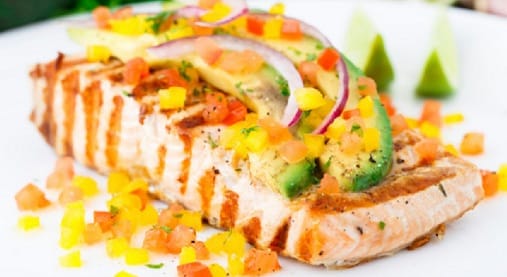 Salmone alla griglia con dadolata di verdure