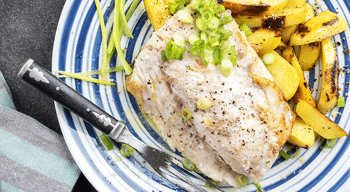 Merluzzo su letto di zucchine e patate