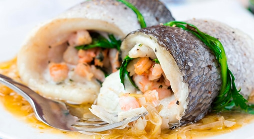 Involtini di filetto di branzino con gamberetti