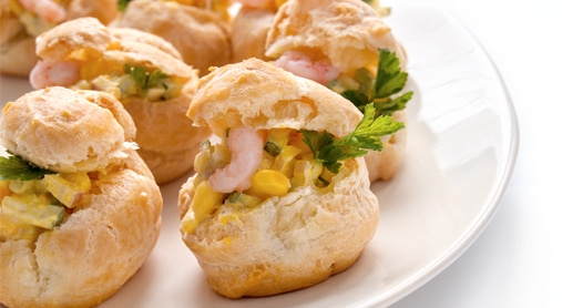 Bignè salati con gamberetti e mais