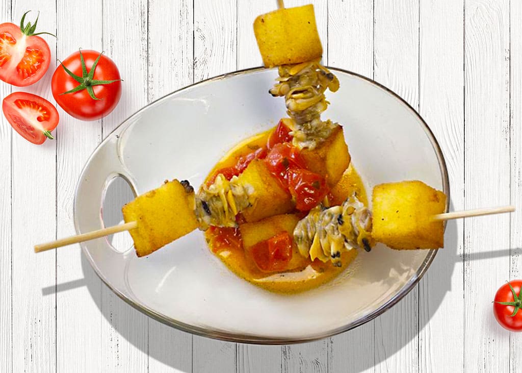 Mini Spiedini di Vongole e Polentina