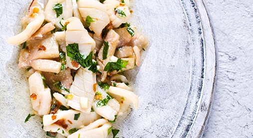 Riempi d’acqua una pentola, aggiungi uno spicchio d’aglio, due foglie di alloro, qualche grano di pepe nero e porta ad ebollizione. Immergi ed estrai per tre volte il polpo: in questo modo i tentacoli si arricceranno. Dopodichè immergilo definitivamente e lascia bollire per 40/50 minuti circa in modo che il polpo si ammorbidisca. Lascialo riposare […]