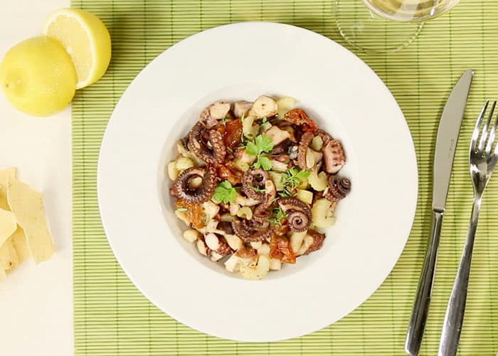 Polpo, ricette ai sapori mediterranei, per un antipasto con insalata di mare fresca e veloce da preparare. Come cucinare il polpo: ricette alla mediterranea pomodori secchi, sedano e timo. Cuocete per circa 5 minuti il polpo tagliato cotto in abbondante acqua salata. Una volta cotto unitelo in una ciotola insieme ai fagioli cannellini ben sgocciolati. […]