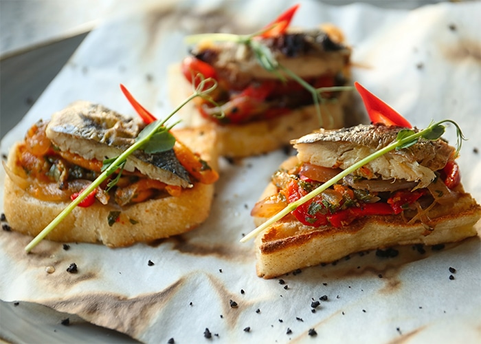 Taglia il pan carrè a triangoli e fallo tostare in forno. Intanto taglia i peperoni e la cipolla a filetti, cuocili in padella con un filo d’olio per circa 10 minuti, a fine cottura aggiungi qualche foglia di origano fresco. Cuoci anche i filetti di sgombro in una padella a parte con un filo d’olio […]