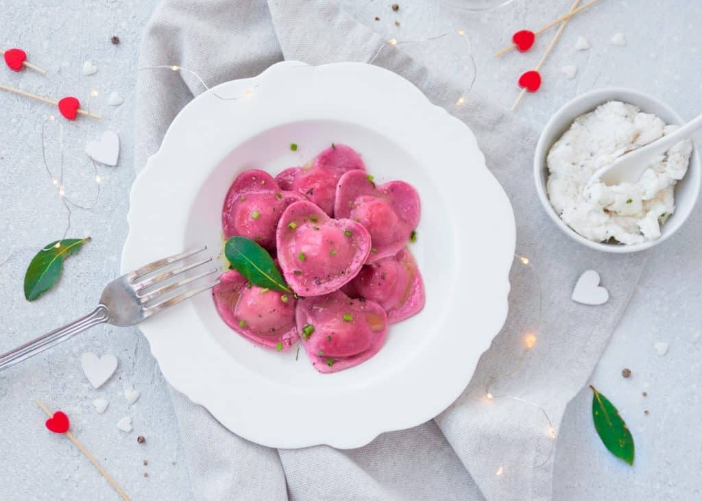 Romantici già nel colore, questi ravioli uniscono la cremosità del baccalà mantecato alla dolcezza terrosa della barbabietola. Una ricetta che richiede cura e collaborazione, perfetta per le coppie che amano prendersi il loro tempo e trasformare la cucina in un piccolo laboratorio creativo.