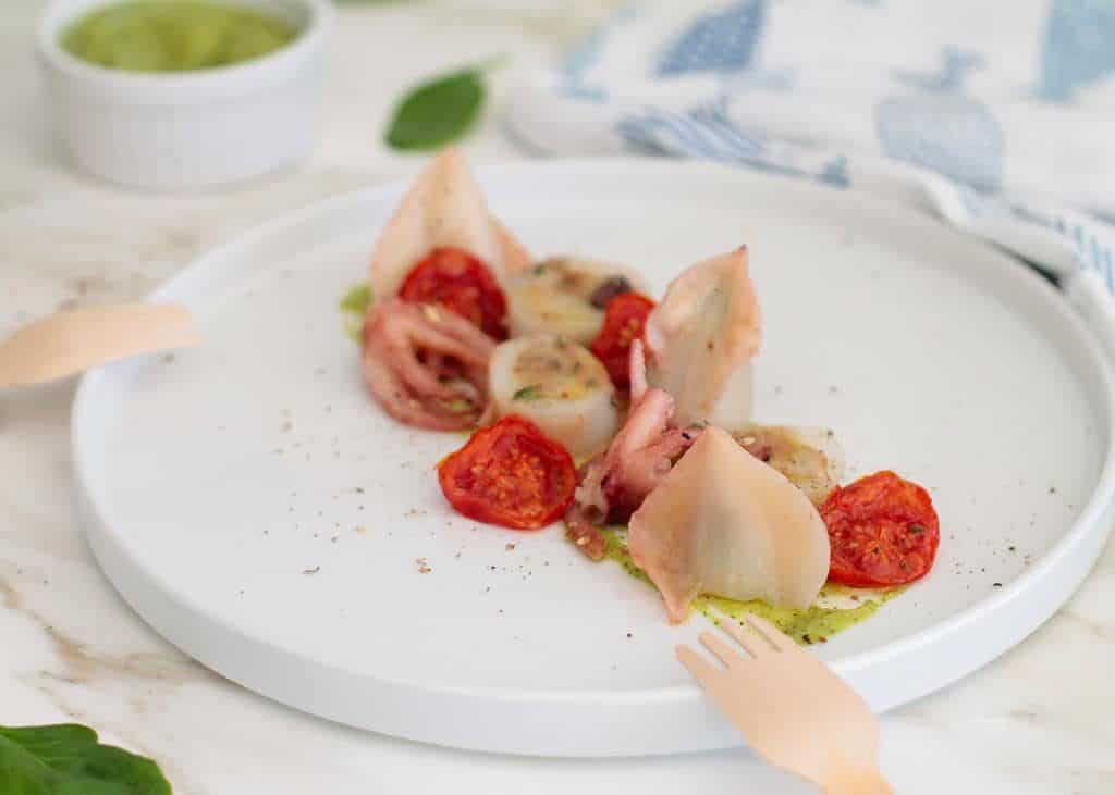 Un antipasto dalla consistenza morbida e gustosa. Il polpo si adagia su una crema di hummus vellutata creando un piatto equilibrato e contemporaneo. Una ricetta da costruire insieme, passo dopo passo, per chi ama sperimentare e trasformare ingredienti semplici in qualcosa di speciale.