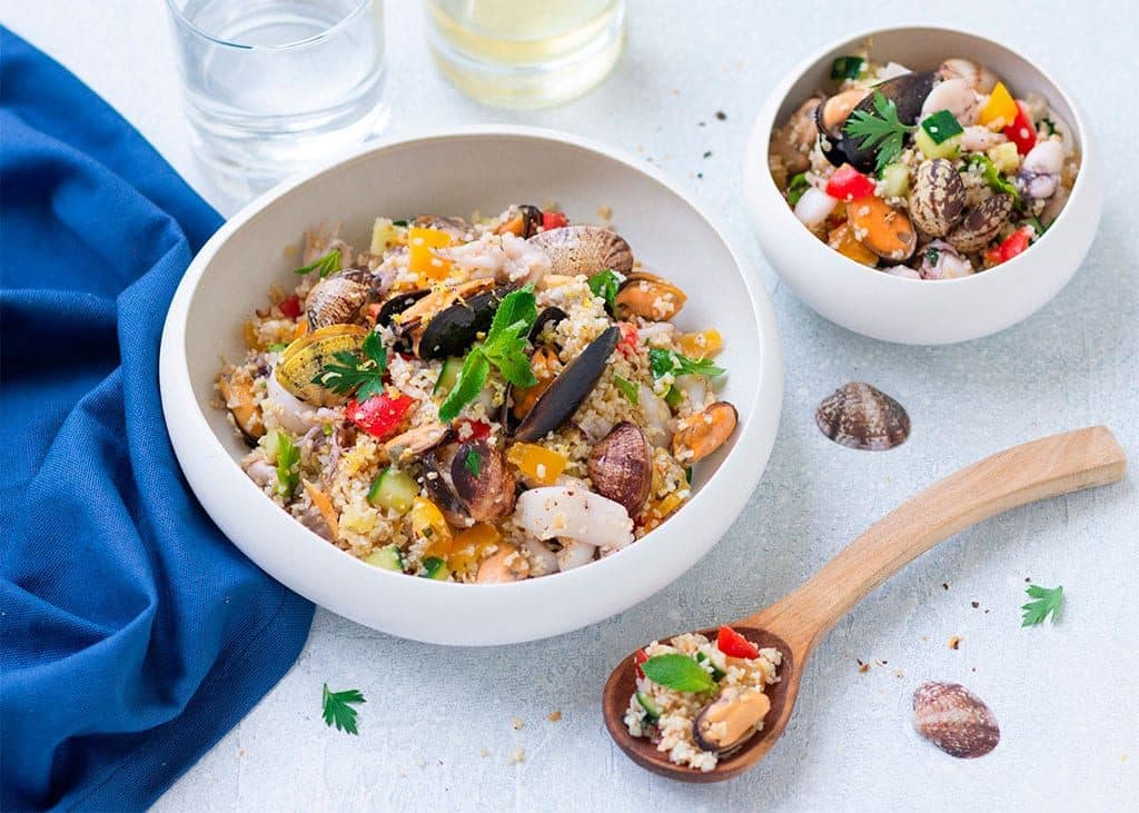 Il tabulè ai frutti di mare è un piatto completo, fresco e ricco di nutrienti, ideale come pasto unico o lunch post-allenamento. Si prepara in anticipo ed è perfetto anche da gustare freddo.