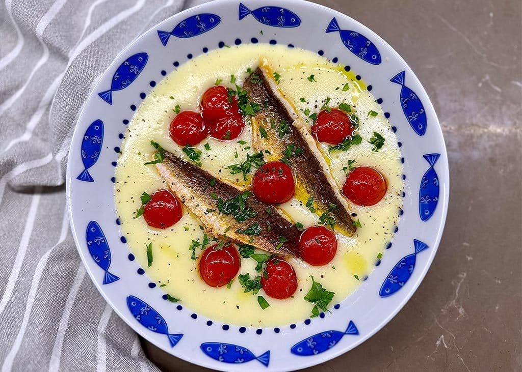 Una vellutata morbida che accoglie la delicatezza della gallinella e la dolcezza dei pomodorini. Comfort food con un tocco gourmet, dove leggerezza e gusto trovano un equilibrio perfetto.
