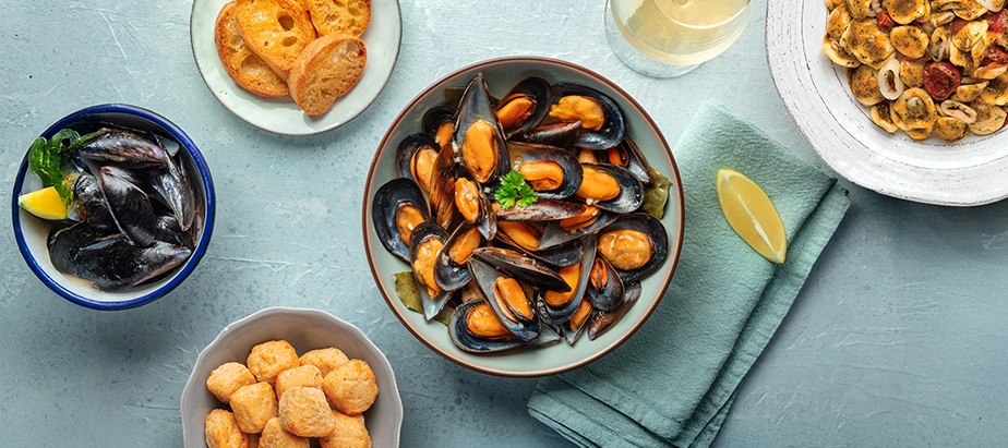 Un grande classico della tradizione, già pronto da scaldare. Sugo saporito e cozze tenere, per una cena semplice ma piena di carattere.
