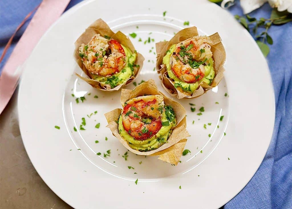- CESTINI DI PASTA FILLO CON GAMBERI E CREMA DI AVOCADO