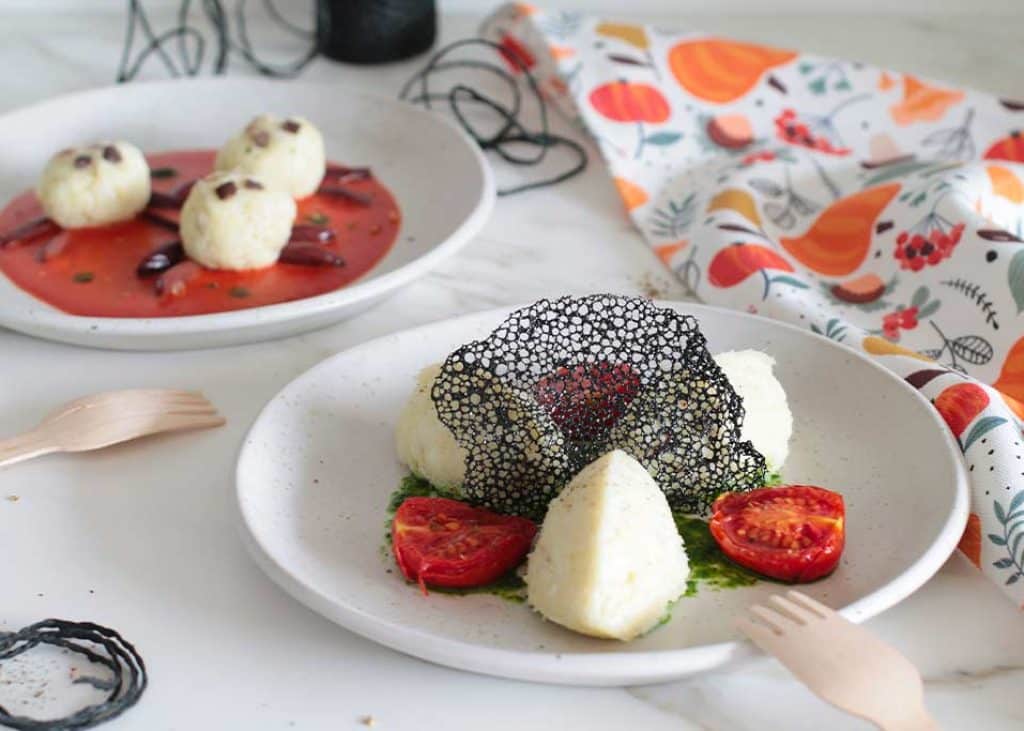 Forme e colori da brivido in una ricetta elegante e nel vero spirito di Halloween. La ragnatela al nero di seppia e i pomodorini confit creano un piatto scenografico e sorprendente. E, per i più piccoli, prova la versione con le polpette di merluzzo che si trasformano in ragnetti grazie alle olive!