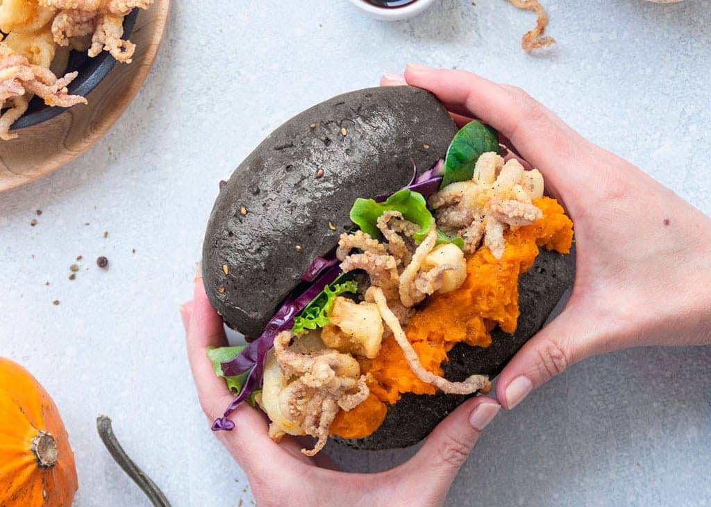Ispirato al classico bocadillo de calamares madrileno, questo blackburger ha il gusto dell’autunno e i colori di Halloween. Provalo, ti stregherà!