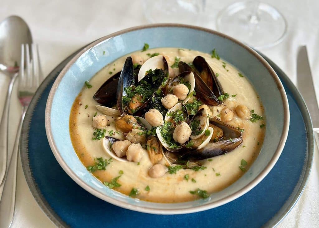 Due ricette deliziose che insieme diventano irresistibili: la vellutata di ceci con sauté di cozze e vongole unisce la cremosità dei legumi al sapore autentico del mare. Completa il piatto con dei croccanti crostini all’aglio, perfetti per fare una gustosa scarpetta!