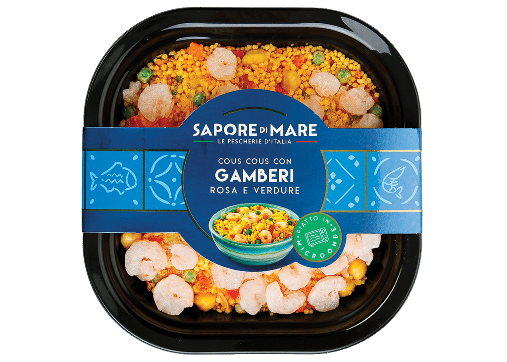 Cous cous con gamberi rosa e verdure, in versione per microonde, dove i sapori delicati del gambero, delle verdure e i ceci si accostano perfettamente al cous cous rendendolo un piatto fresco, light e saporito. Leggermente speziato, a base di cous cous, condito con gamberi rosa, ceci e verdure varie, come piselli, carote e sedano.